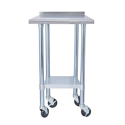 The tables feature an adjustable lower shelf and and are available with or without a 2¼ backsplash. I purchased the 49 inch table. Rockpoint stainless steel table for prep & work with backsplash 30x24 inches, nsf metal commercial kitchen table with adjustable under shelf and table foot for restaurant, home and hotel. We offer exceptional kitchen work tables and storage systems for every commercial kitchen at wholesale price. A smooth 24 x 72 in.